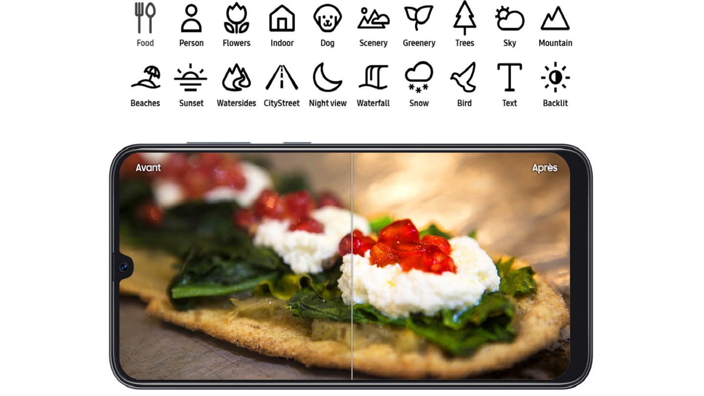 L'appareil photo intelligent du Galaxy A70 est capable de reconnaître jusqu'à 19 scènes différentes. Il ajustera ensuite automatiquement les réglagles pour des photos plus que parfaites.
